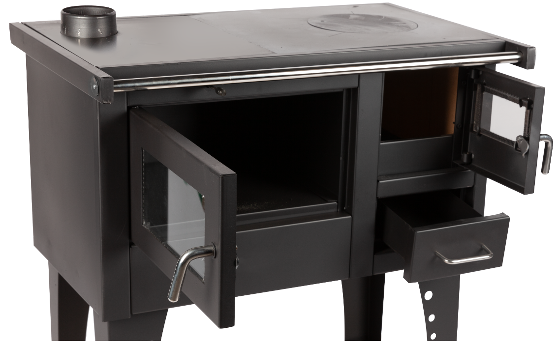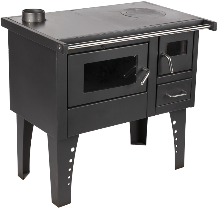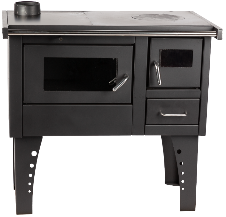 It is a solid-fuel stove that can be used both for heating dwellings and for cooking (it is equipped with a hob and an oven). The stove is made of steel with a steel hob and an oven (on the left or right).