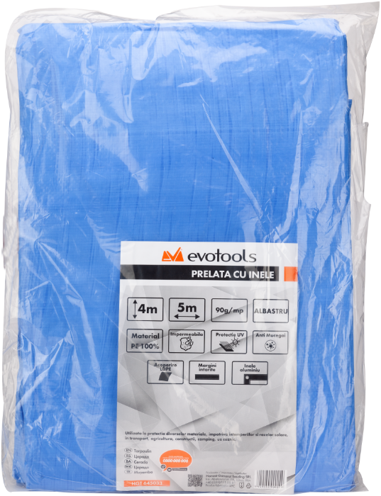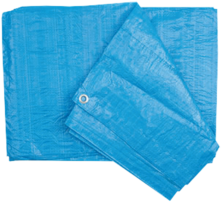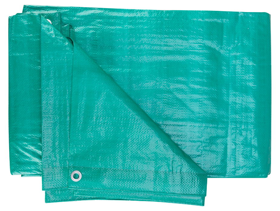 Woven tarp made of 100% PE, equipped with metal grommets every 0.5 in 0.5 m, used to protect various materials against weather and sunlight, for transport, agriculture, construction, camping, and household use.