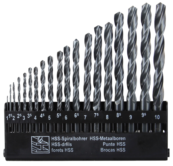 The set contains 19 high‑quality HSS 4241 twist drill bits with sizes from 1-10 mm.
