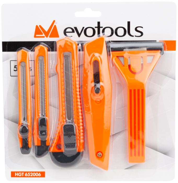 A set of 5 cutters is a tool kit that includes five cutters of different sizes or types, each with a sharp blade and suitable for a variety of cutting tasks. These cutters can be used for precise cutting projects as well as for activities such as opening packages, cutting paper, or cutting other materials, offering versatility and efficiency when working with various materials and applications.